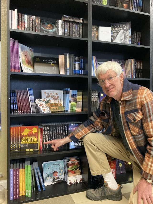 I am pointing to my books on the shelf at Black Birch Books in Wasilla, Alaska. It is a bookstore run by a dynamic disabled …